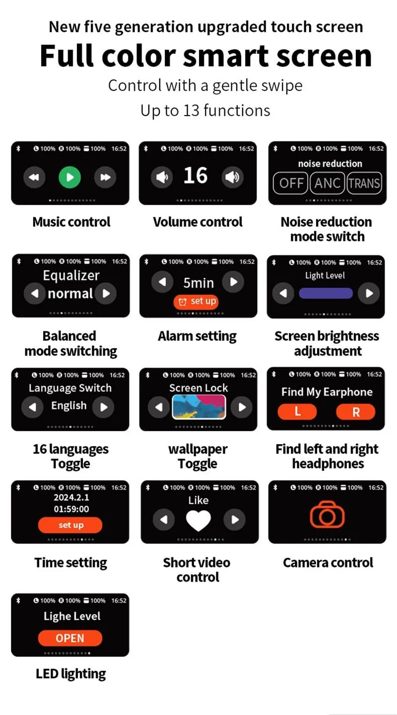 Introducing our latest innovation in audio technology – in-ear headphones with a screen display. Designed to enhance your listening experience, these headphones combine cutting-edge features with unrivaled comfort, ensuring you enjoy your favorite music with crystal-clear sound and convenience.